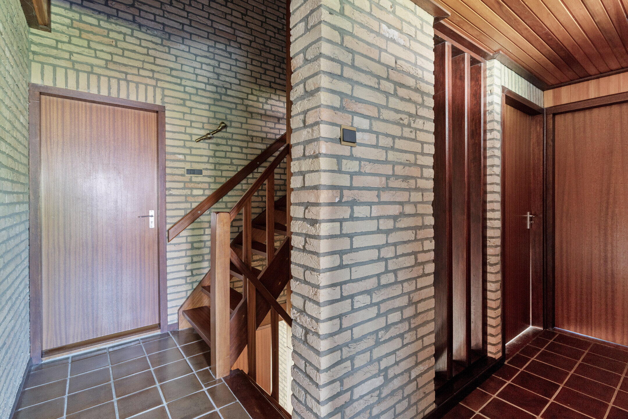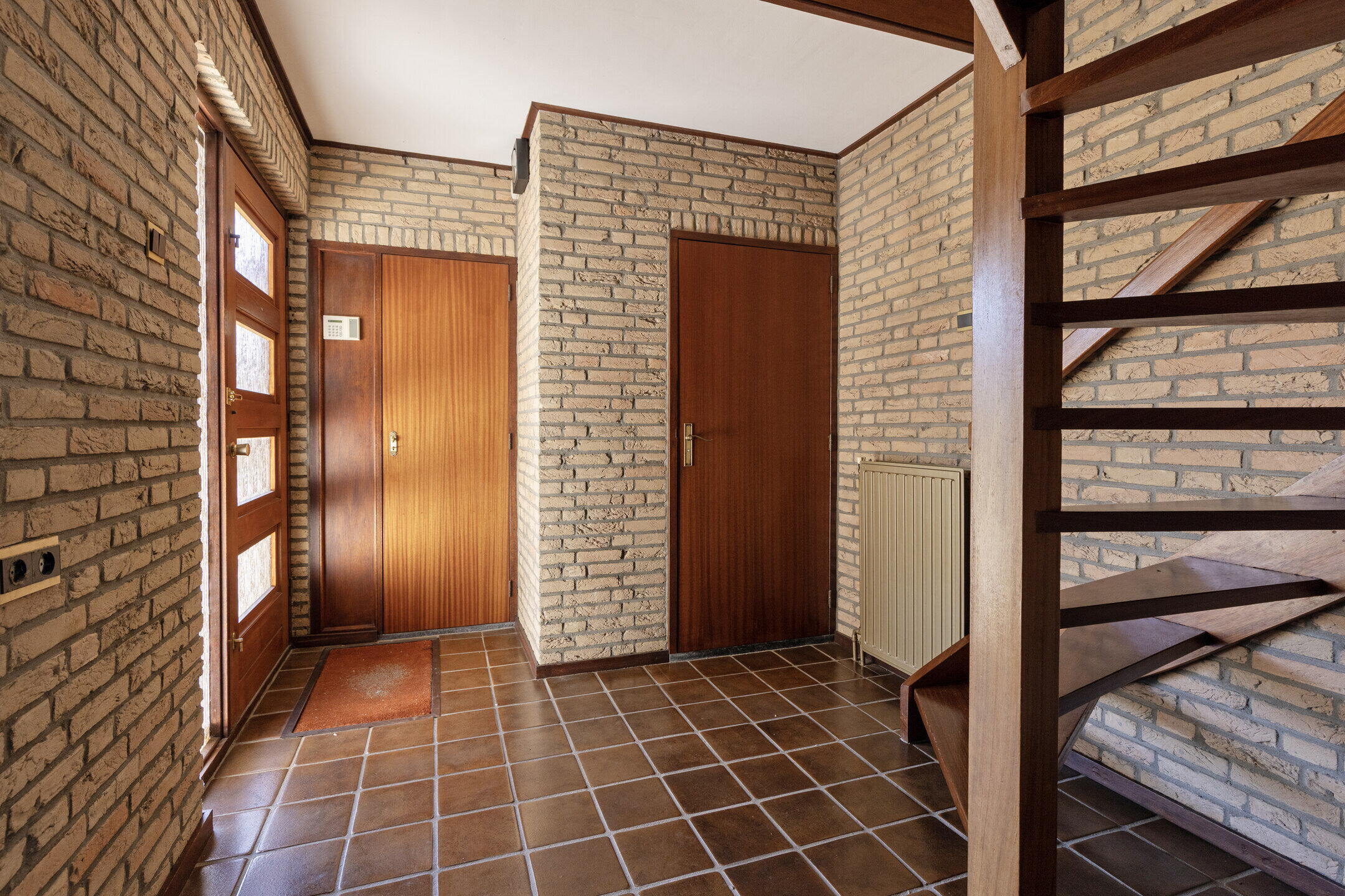 Via de ruime oprit bereik je de entree van de woning. Je komt binnen in de hal met een apart toilet en de vaste trap naar de eerste verdieping. Een nette en praktische binnenkomst die direct een goed gevoel geeft.