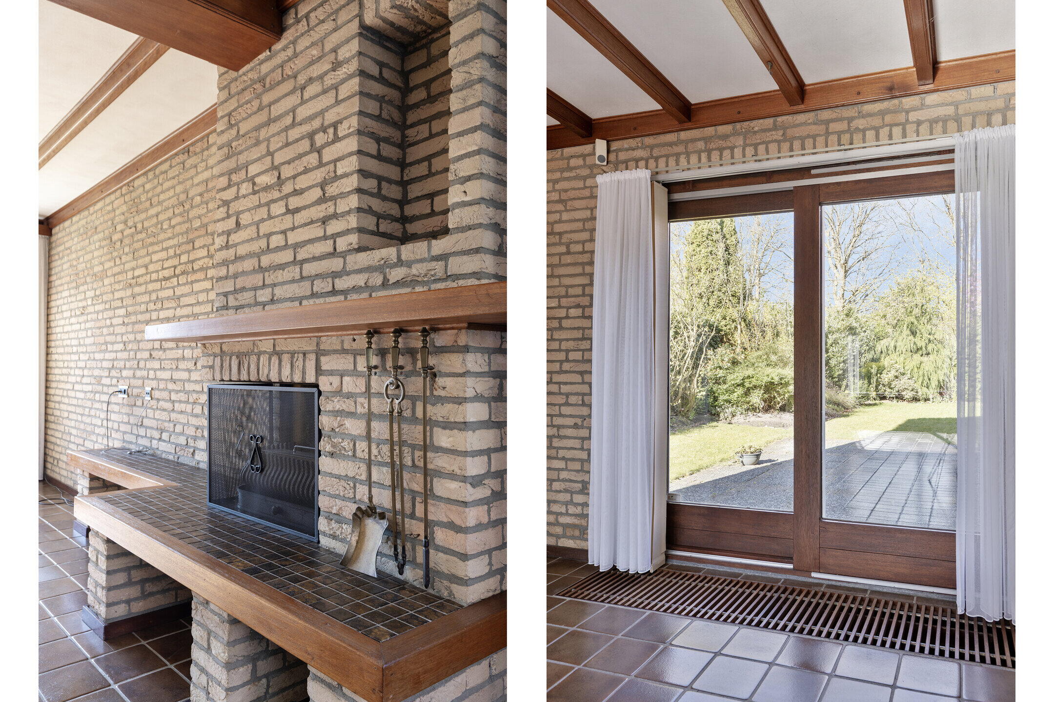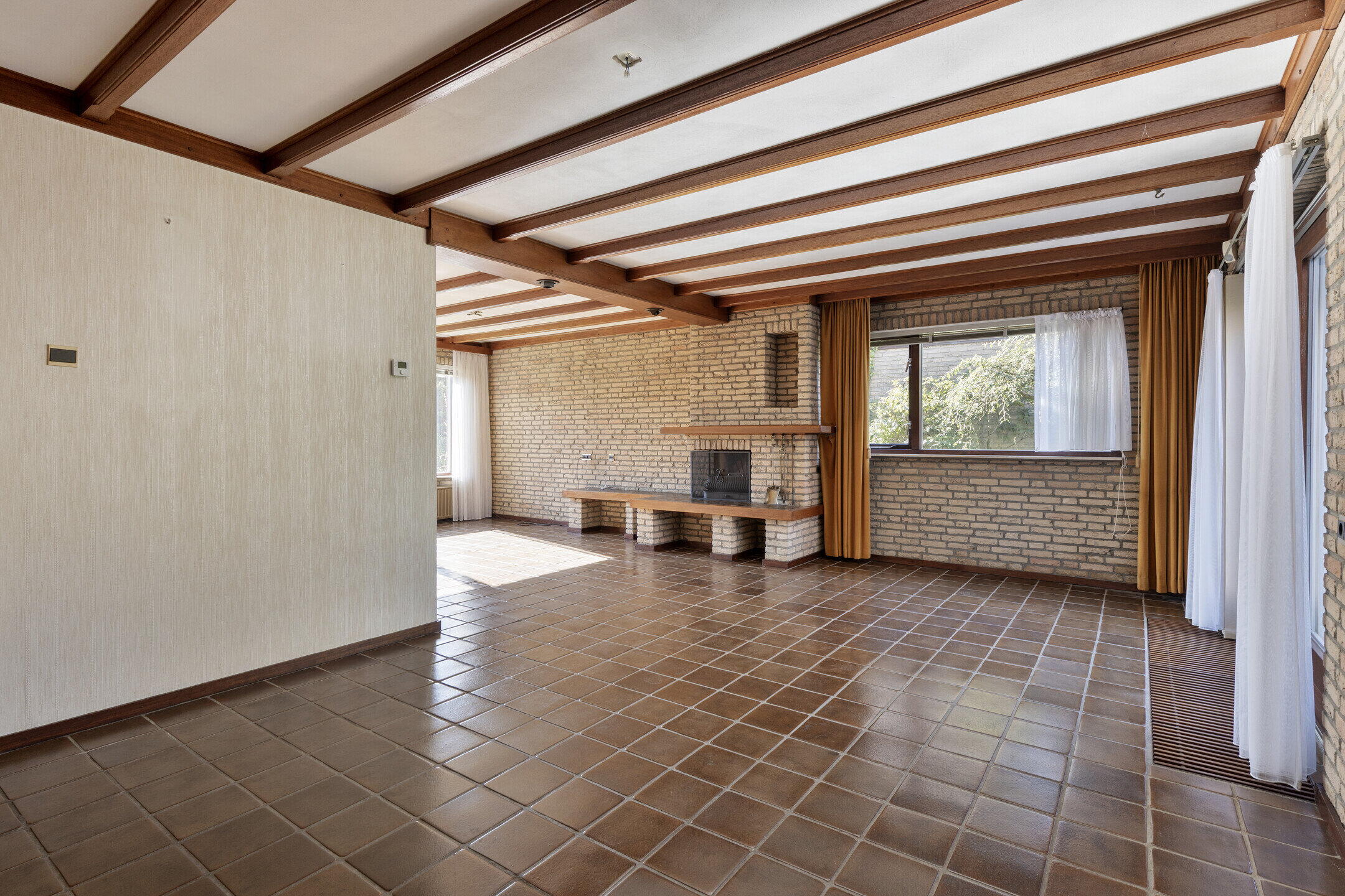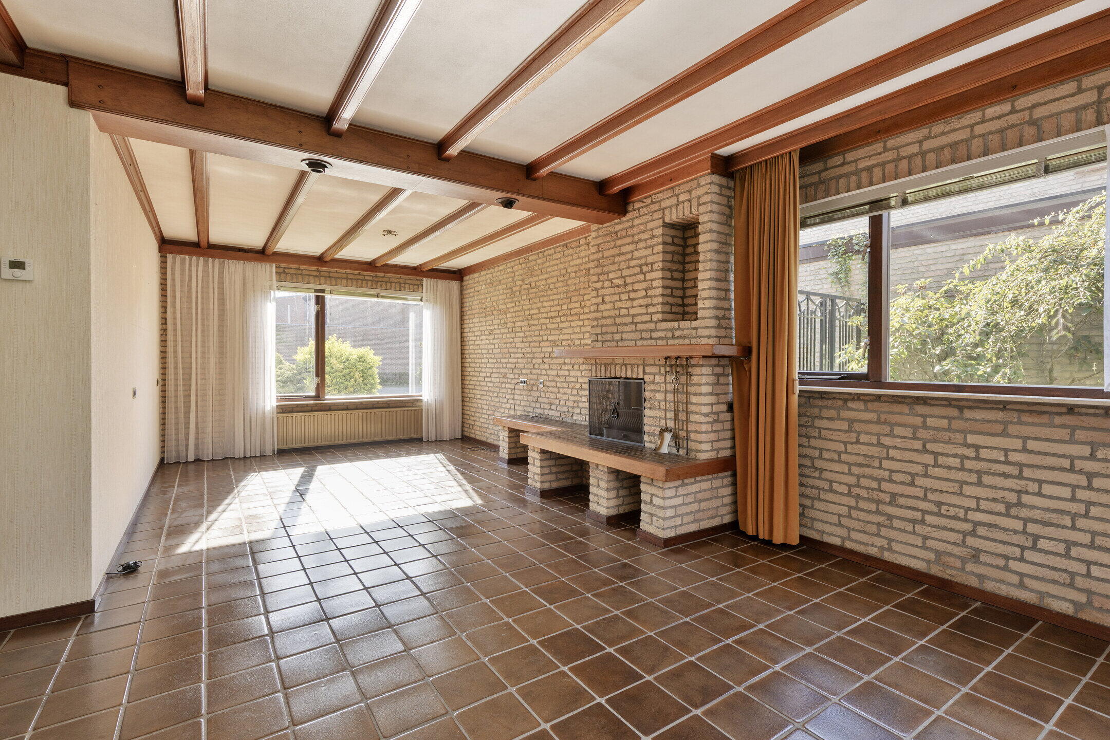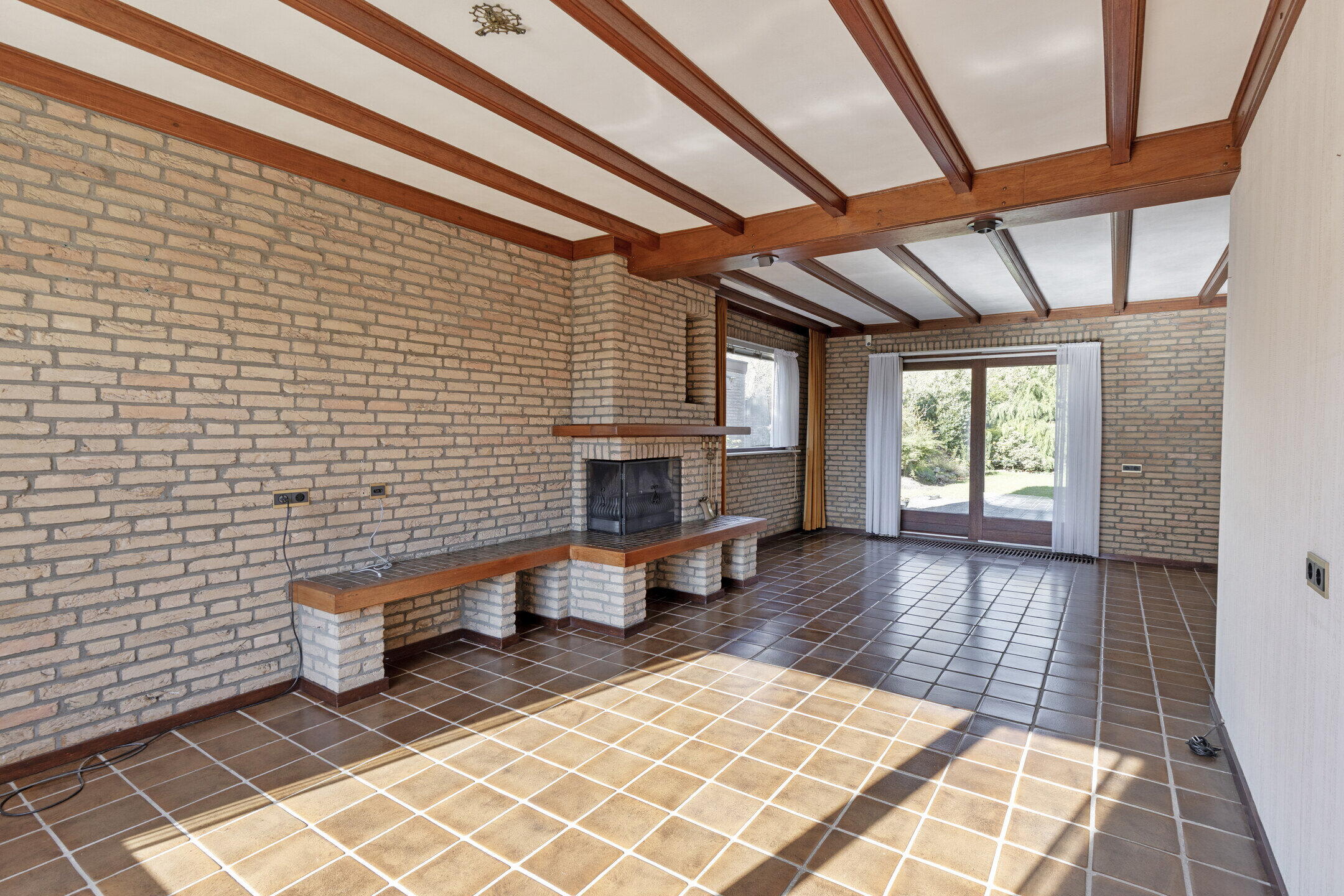 Vanuit de hal stap je de woonkamer binnen. Deze ruimte is netjes onderhouden, maar biedt tegelijkertijd een mooie kans om het geheel naar eigen smaak te moderniseren. Dankzij de grote raampartijen geniet je hier van veel lichtinval en de gezellige open haard zorgt voor een warme sfeer. De indeling biedt volop mogelijkheden voor het creëren van verschillende zit- en leefhoeken. Via de schuifpui loop je zo de tuin in, een heerlijke verbinding tussen binnen en buiten.