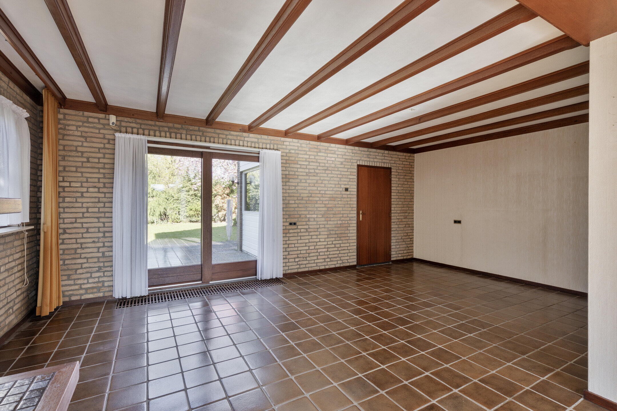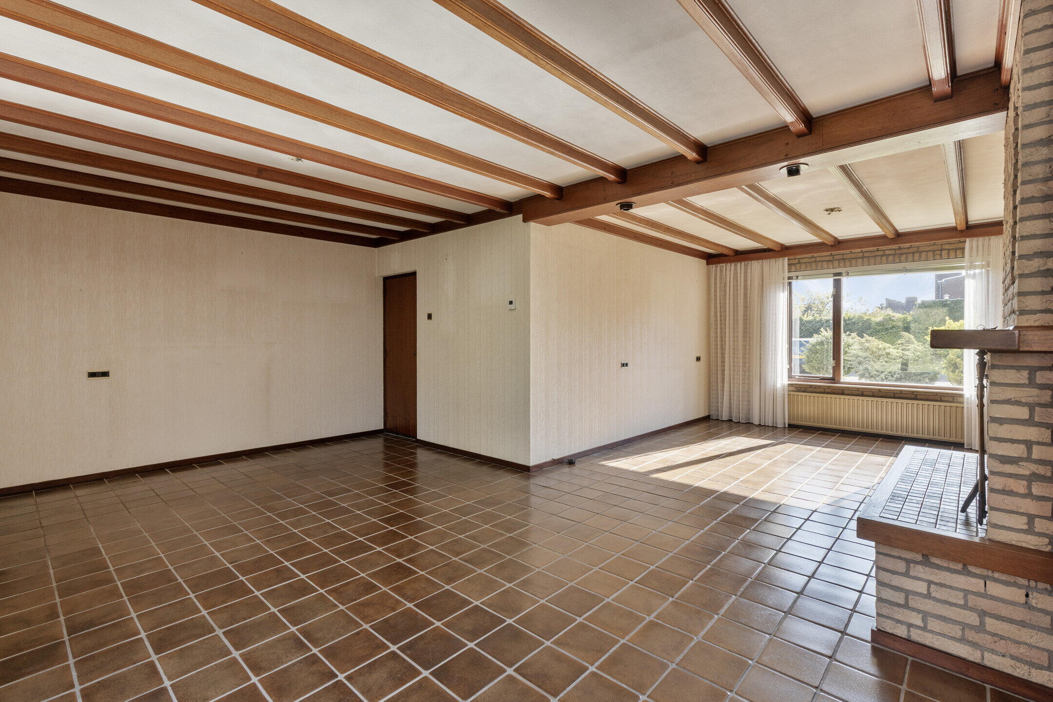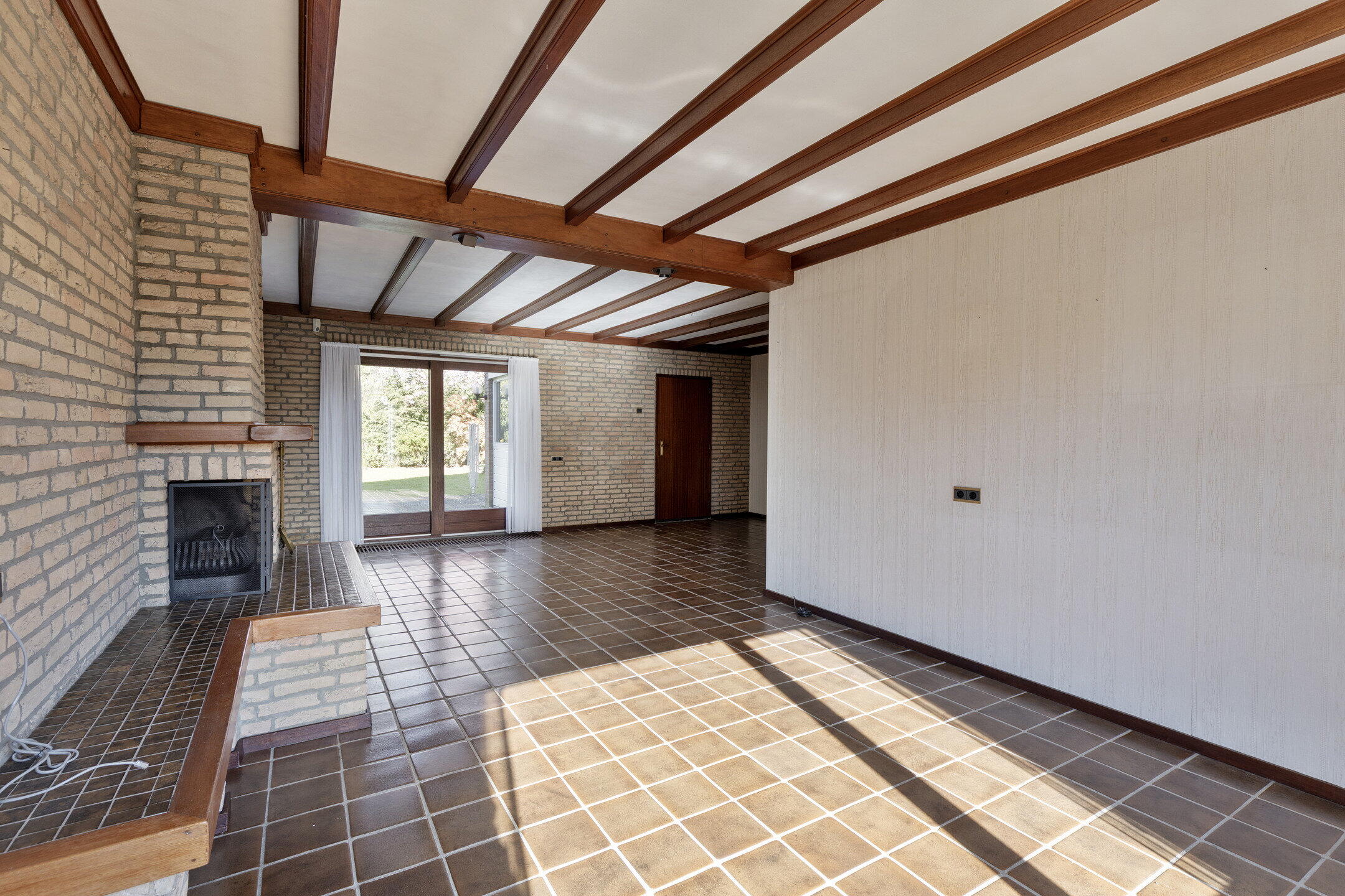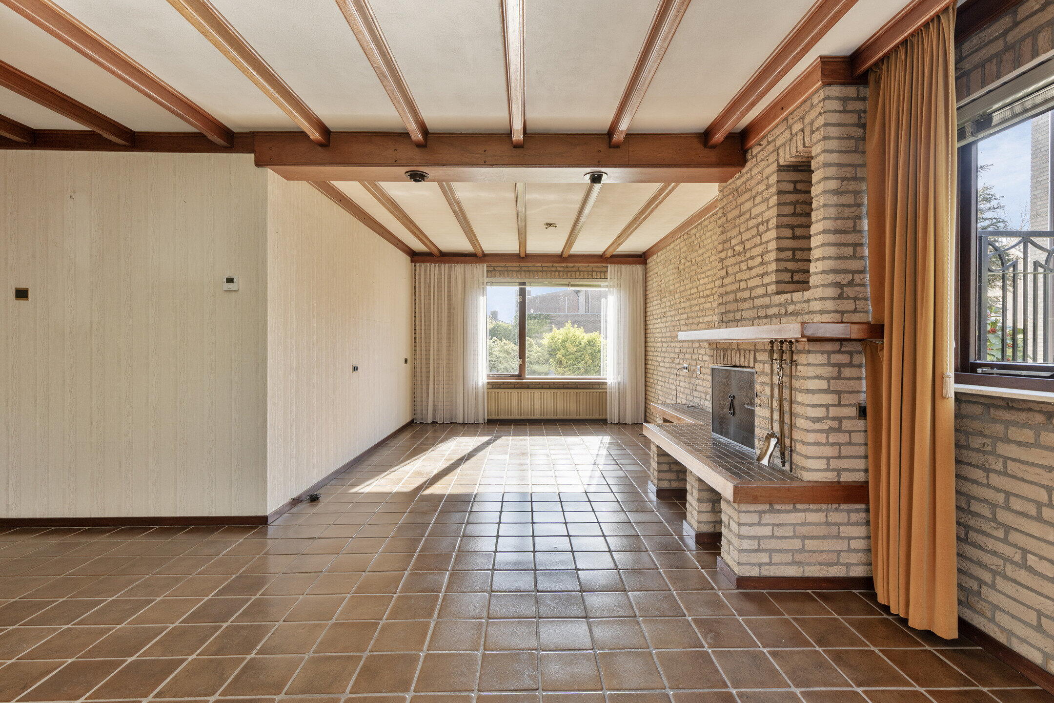 Vanuit de hal stap je de woonkamer binnen. Deze ruimte is netjes onderhouden, maar biedt tegelijkertijd een mooie kans om het geheel naar eigen smaak te moderniseren. Dankzij de grote raampartijen geniet je hier van veel lichtinval en de gezellige open haard zorgt voor een warme sfeer. De indeling biedt volop mogelijkheden voor het creëren van verschillende zit- en leefhoeken. Via de schuifpui loop je zo de tuin in, een heerlijke verbinding tussen binnen en buiten.