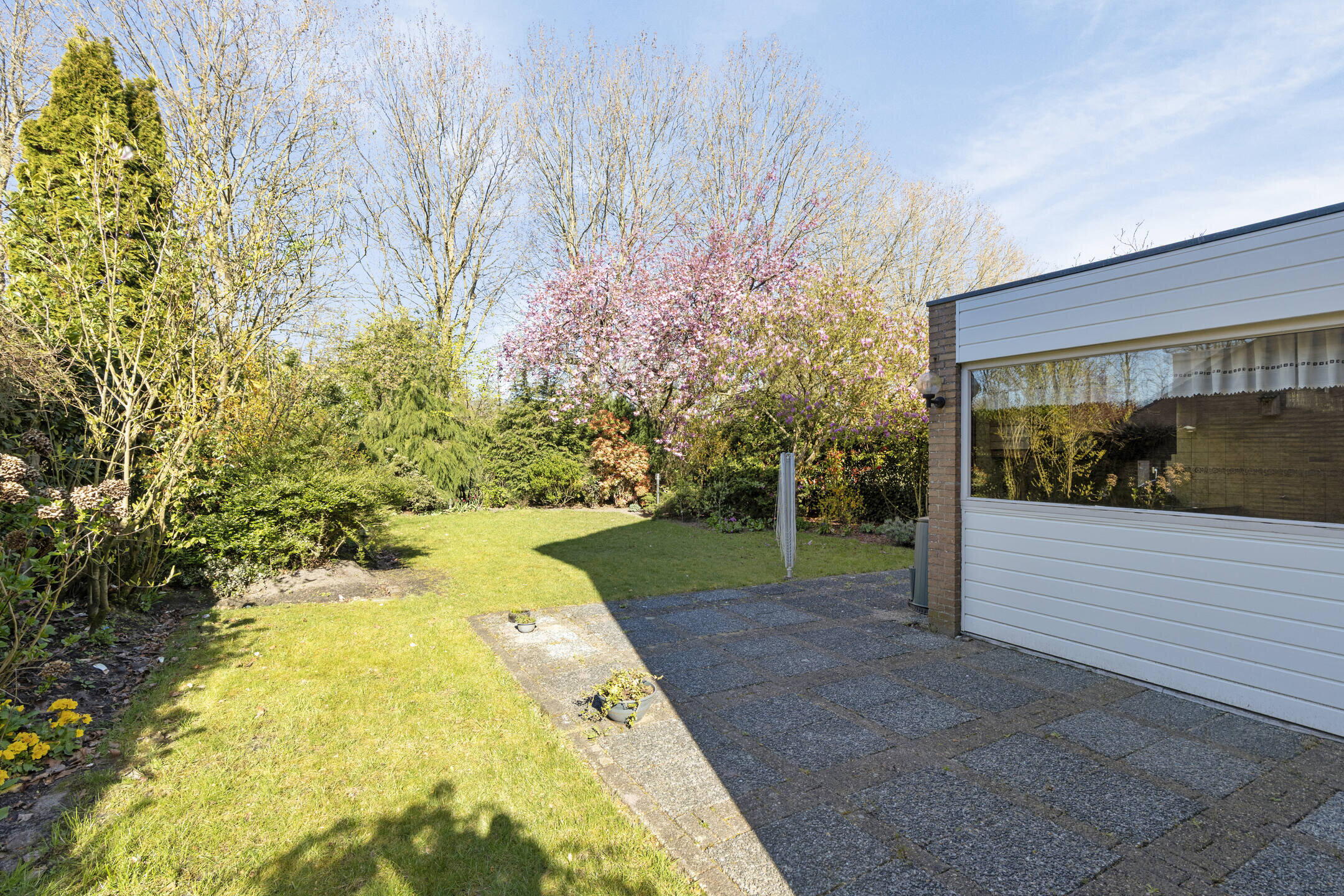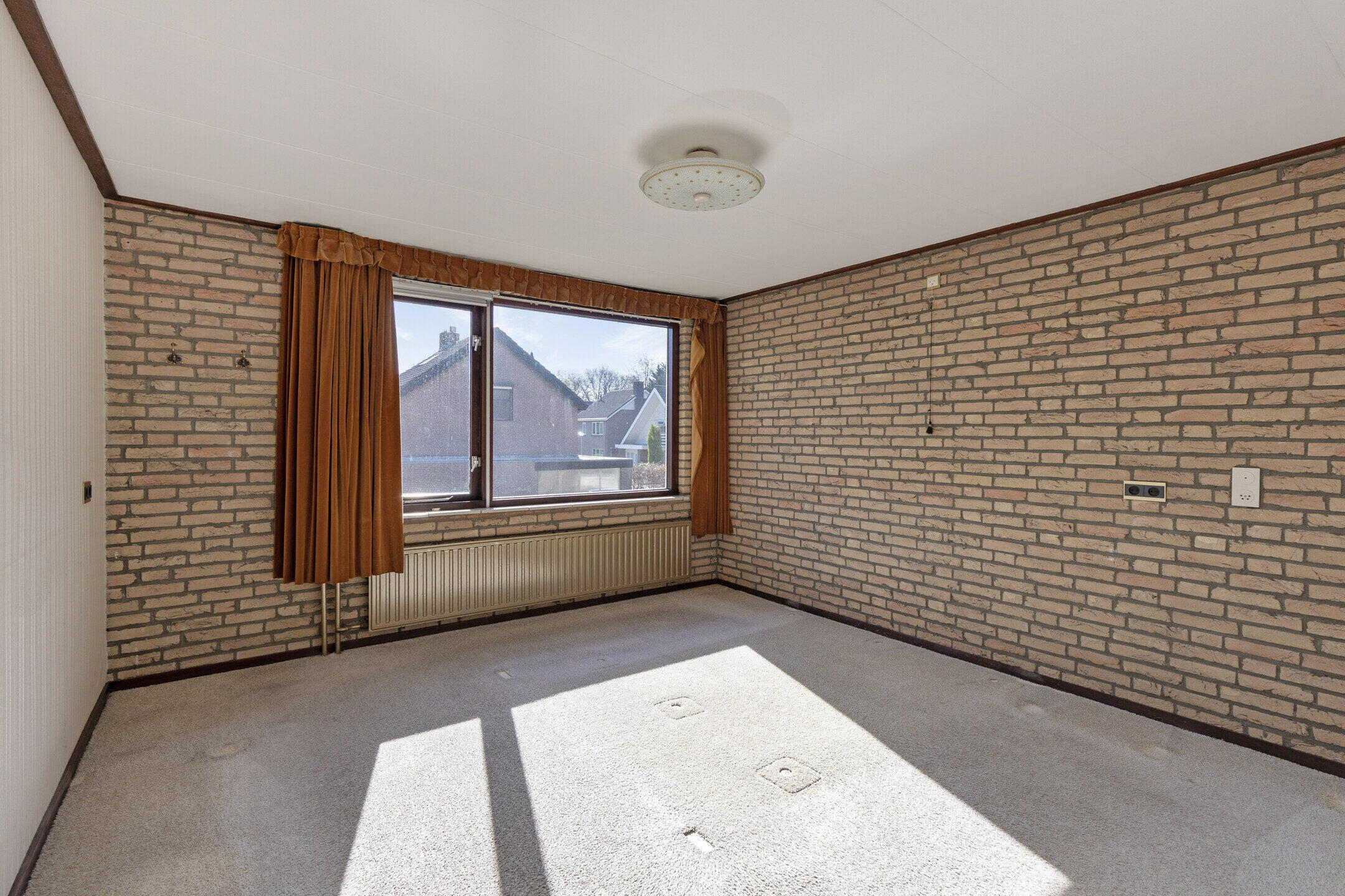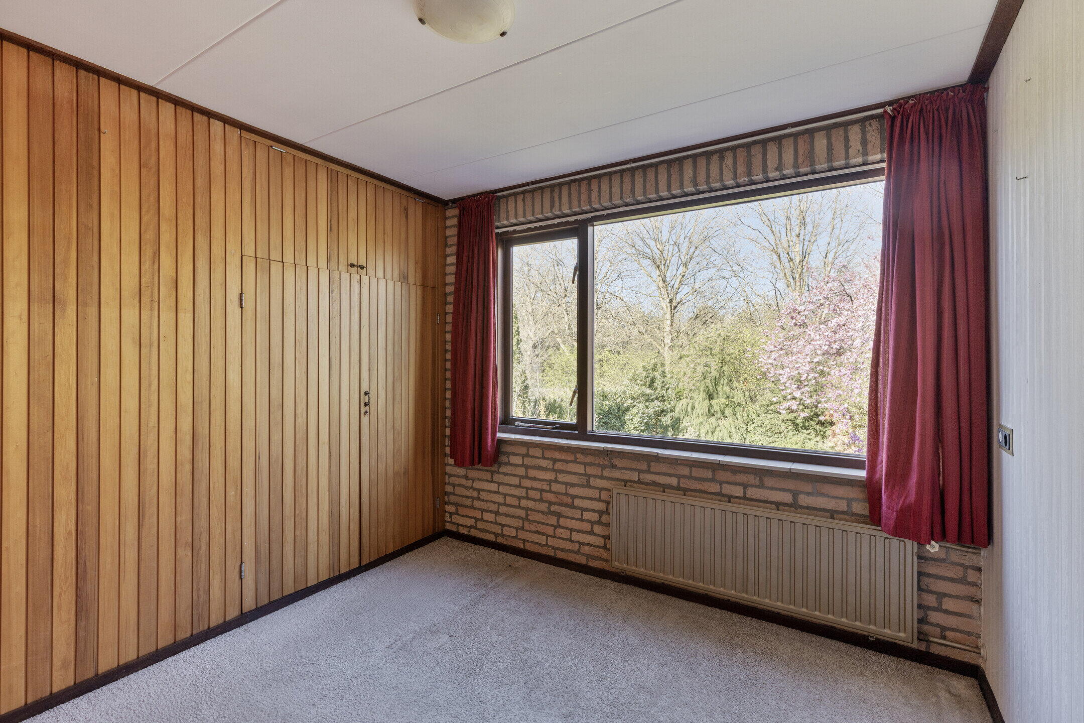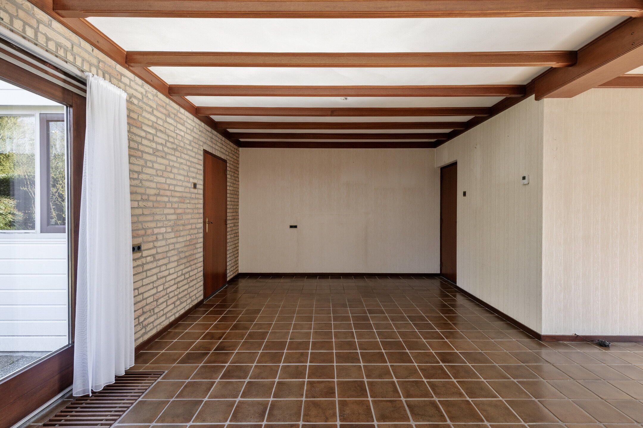 Vanuit de hal stap je de woonkamer binnen. Deze ruimte is netjes onderhouden, maar biedt tegelijkertijd een mooie kans om het geheel naar eigen smaak te moderniseren. Dankzij de grote raampartijen geniet je hier van veel lichtinval en de gezellige open haard zorgt voor een warme sfeer. De indeling biedt volop mogelijkheden voor het creëren van verschillende zit- en leefhoeken. Via de schuifpui loop je zo de tuin in, een heerlijke verbinding tussen binnen en buiten.