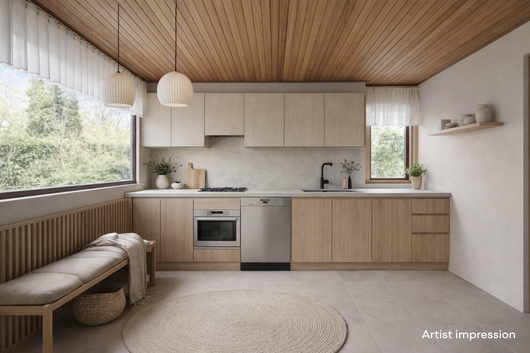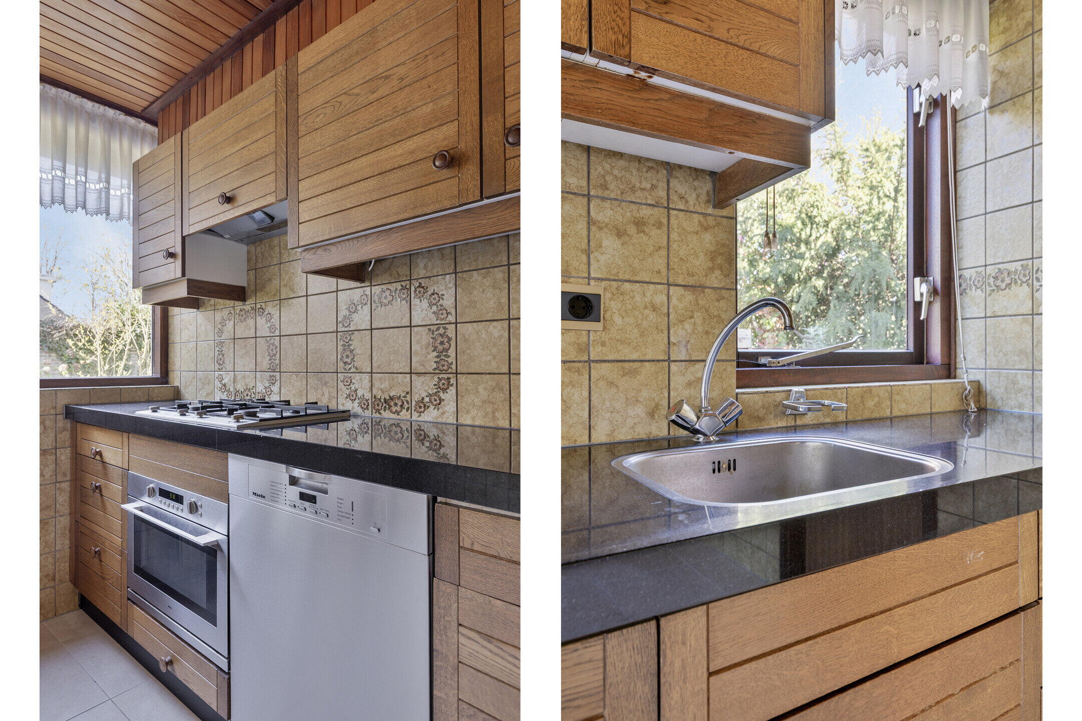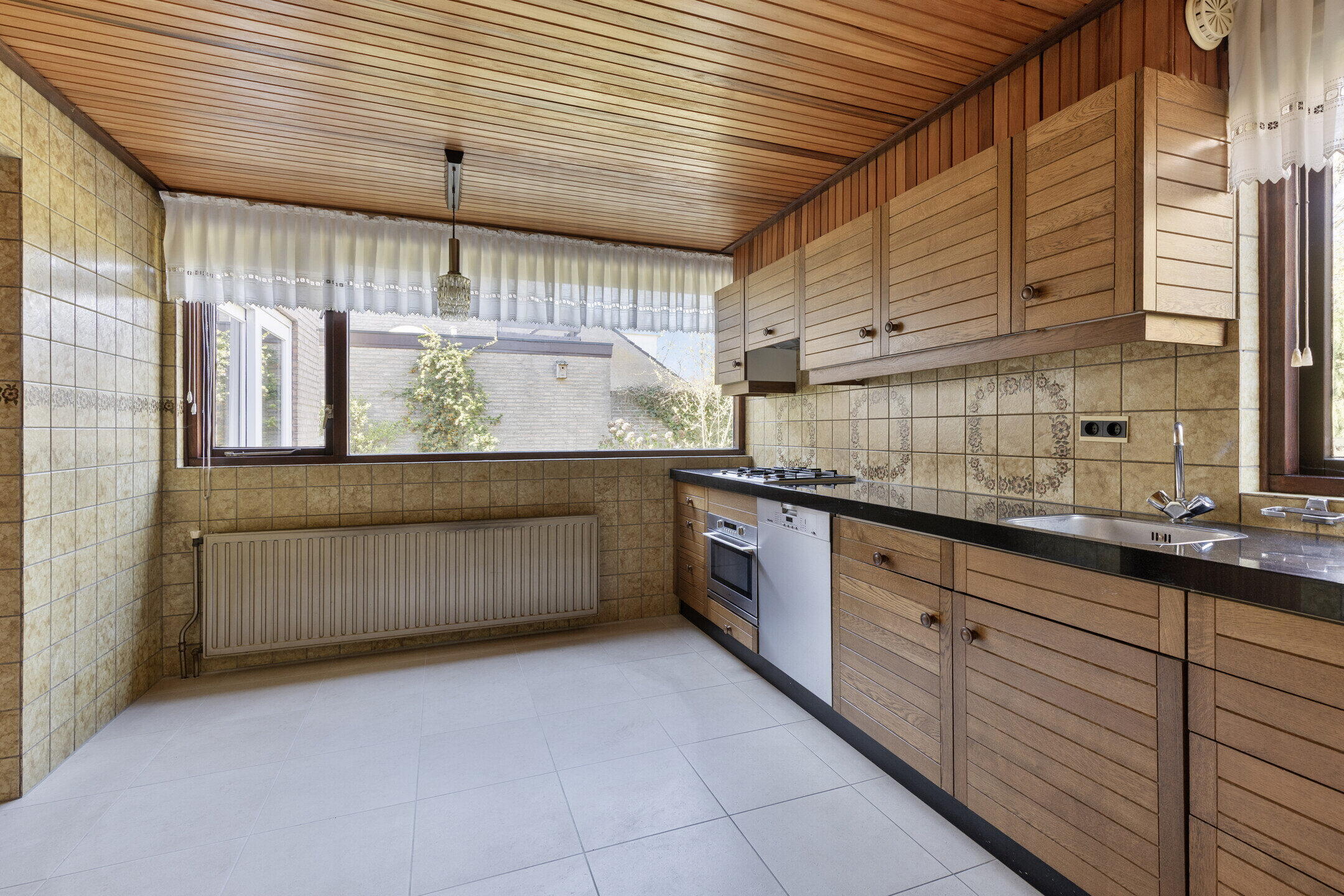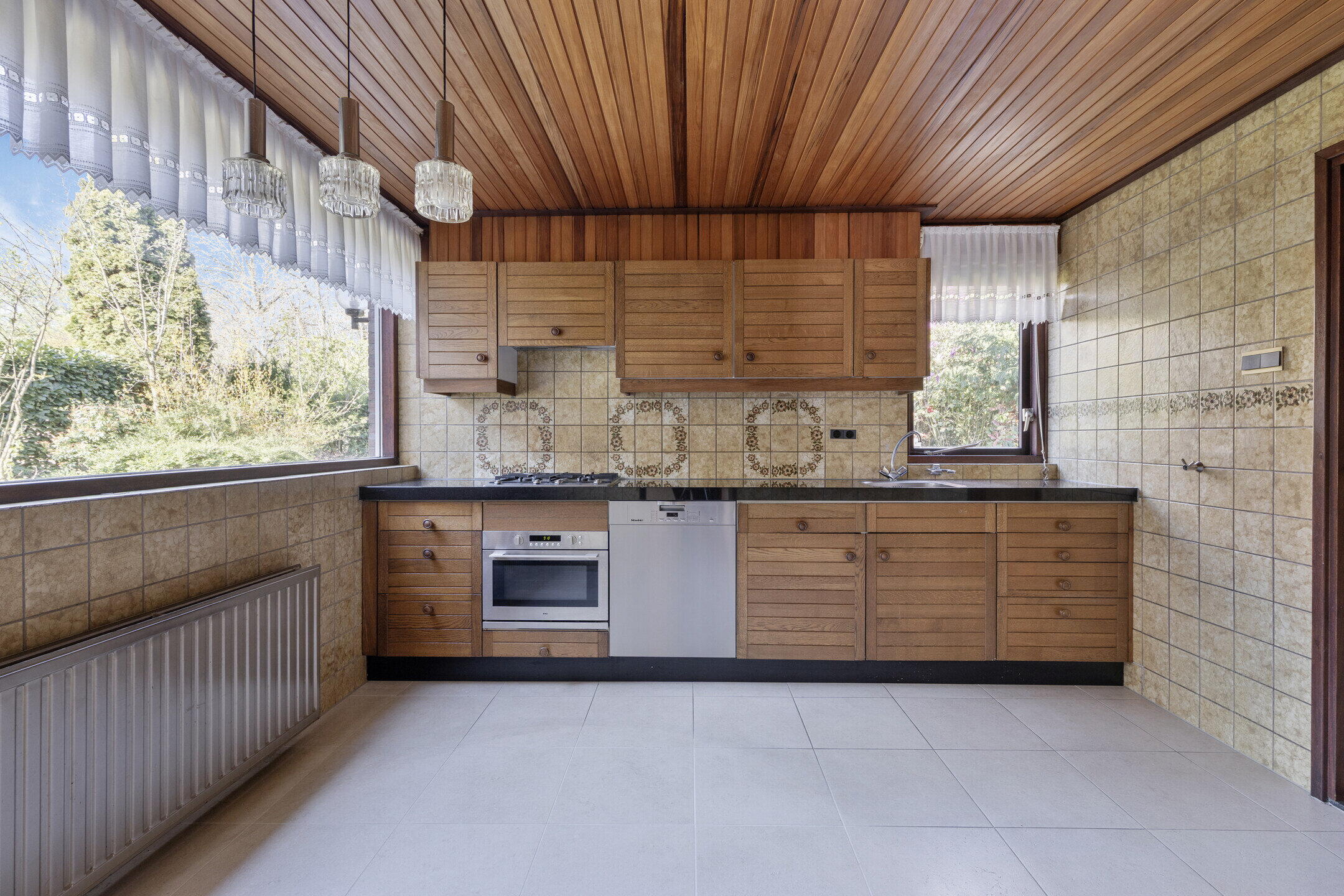 De dichte keuken is verrassend ruim en eveneens keurig onderhouden. Met een warme houten uitstraling en diverse inbouwapparatuur is dit een fijne basis. De ruimte leent zich perfect voor het realiseren van een moderne droomkeuken. Aangrenzend vind je de bijkeuken, die toegang biedt tot zowel de tuin als de garage — ideaal!