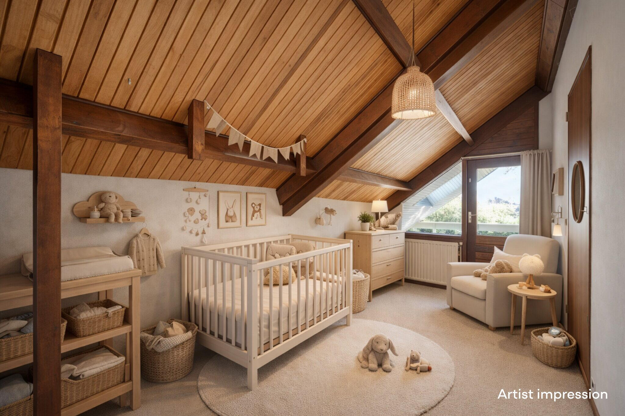 Op de eerste verdieping bevinden zich maar liefst vier ruime slaapkamers, allemaal met een prettige lichtinval. Ook hier geldt: met een beetje liefde en aandacht maak je hier prachtige kamers van. Eén van de slaapkamers beschikt zelfs over een heerlijk balkon — een fijne plek om de dag te beginnen of juist af te sluiten. De badkamer is netjes en compleet uitgevoerd met een ligbad, ruime douche, toilet en een wastafel met meubel. Een solide basis met volop mogelijkheden. De zolderverdieping verrast met nog eens twee ruime kamers. Perfect als extra slaapkamers, thuiskantoor, hobbyruimte of een combinatie daarvan.